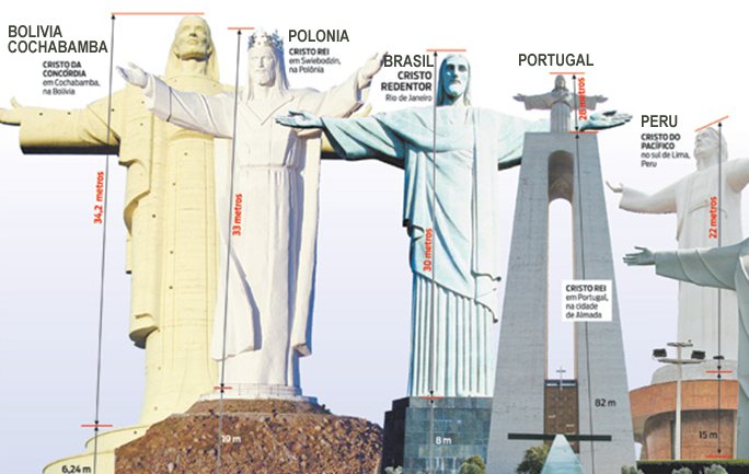 Mas o de Cochamba, na Bolívia, é o mais alto: 4,2 metros maior que o carioca.