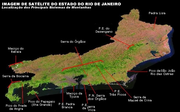 Apesar da sua pequena extensão territorial, o Rio de Janeiro possui uma concentração de montanhas tal que faz do estado um verdadeiro paraíso para a prática do montanhismo.No extremo oeste do estado, na divisa com Minas, está a seção mais generosa do Maciço do Itatiaia (e da Serra da Mantiqueira) em termos de vias de escalada.Paralela à Serra da Mantiqueira, a Serra do Mar se estende do Paraná ao Espírito Santo, mas é no Rio que atinge suas maiores altitudes e os maiores desníveis de relevo. Cruza o Estado quase continuamente de ponta a ponta, no sentido SW - NE, e sua seção mais imponente é o trecho Petrópolis / Teresópolis / Friburgo - a Serra dos Órgãos. É aí que, em meio à vegetação exuberante do que restou da mata atlântica, brotam muitas das maiores paredes rochosas do país, que só encontram similares em algumas montanhas do interior do Espírito Santo e Minas Gerais.O ponto culminante desta serra é o Pico Maior de Friburgo, com mais de 2.300m, no recém-criado Parque Estadual dos Três Picos. Nele e nas montanhas à sua volta encontra-se a maior concentração de vias longas do Brasil, várias delas tendo entre 10 e 24 enfiadas de corda.Muitos outros pontos do relevo merecem atenção, tanto pelas paredes quanto pelas caminhadas que oferecem. Uma descrição mais detalhada das montanhas pode ser vista no texto em anexo (Monumentos Geológicos).A imagem de satélite abaixo oferece uma boa perspectiva do sistema orográfico do nosso estado, e nela indicamos de maneira aproximada os principais pontos de interesse montanhístico.Preparamos também uma lista das montanhas de maior altitude do Estado do Rio, onde colocamos todas aquelas acima de 2.000 metros.